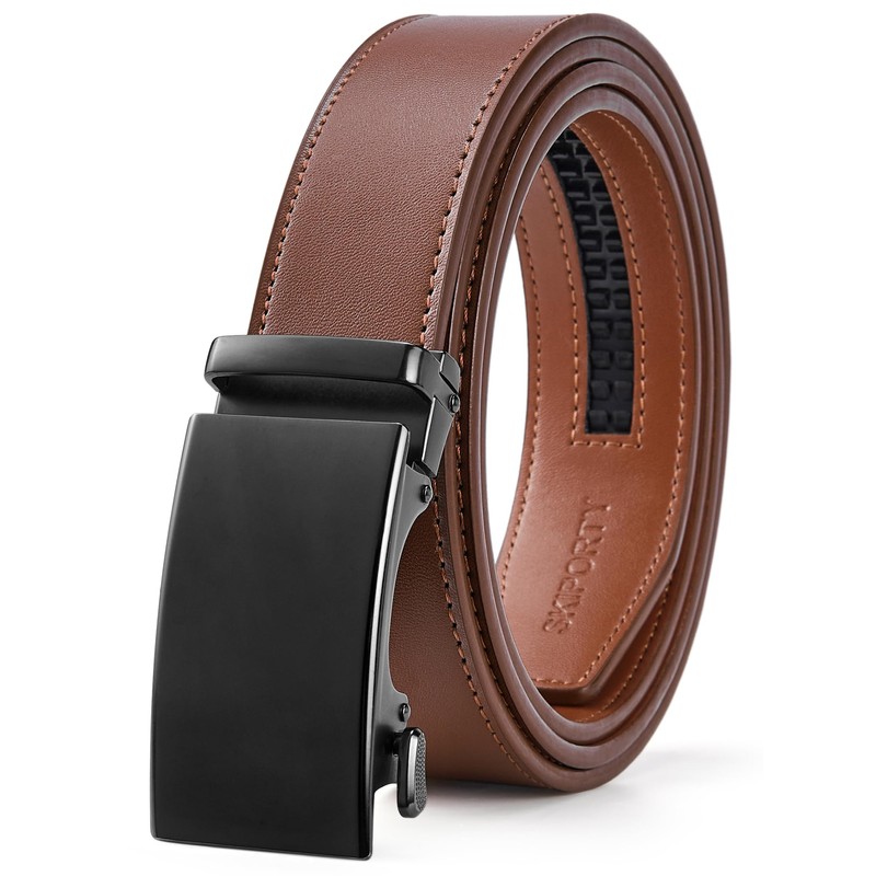 SKiporty Mens Belt,Ratchet Belts for Men Leather 1 3/8'' Adjustable for Dress Jeans B-Brown 28" to 34" Waist Adjustable