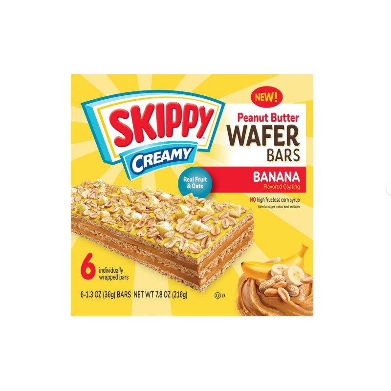 SKIPPY Creamy Banana Coating & Peanut Butter Wafer bars 1Box 6 Bars