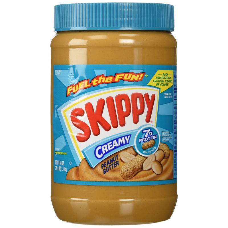 - One 40 oz. jar of SKIPPY Creamy Peanut Butter. Four simple ingredients with a sweet and savory peanut flavor and just seven grams of protein and zero grams trans-fat per serving