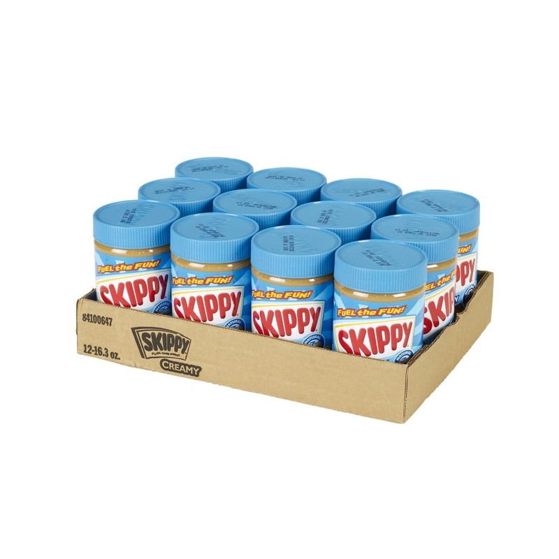 - Twelve 16.3 oz. jars of SKIPPY Creamy Peanut Butter. Four simple ingredients with a sweet and savory peanut flavor and just seven grams of protein and zero grams trans-fat per serving