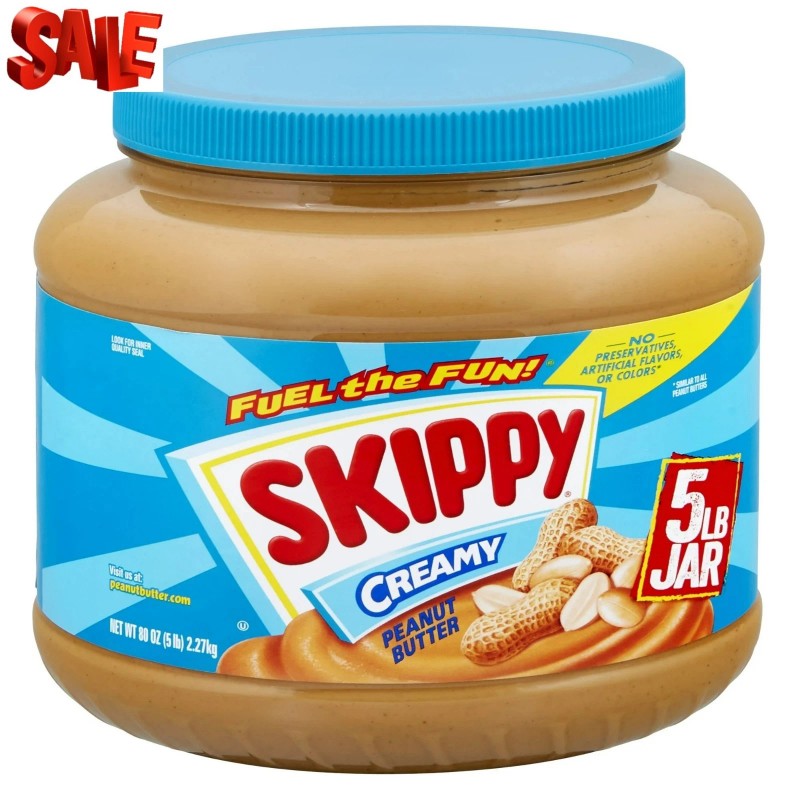 Go to your SKIPPY place! With a hearty snack or a robust sandwich, SKIPPY hits the spot with the right combination of sweet and savory peanut flavor. SKIPPY Peanut Butter makes nutritious delicious with foods like whole grain bread, fruit and milk – so spread the smiles! Our peanut butter helps restore energy and leaves you feeling charged. It’s been a staple on grocery lists and in pantries for over 80 years! Made with four simple ingredients, we only use real roasted peanuts with no added preservatives – no separation and no oily mess. There’s 7 grams of protein per serving; it’s great snacking with this smooth, creamy classic. Free from artificial flavors or colors, certified Kosher, gluten free and tree nut free. Try one of our many varieties: Chunky, Creamy, Reduced Fat, SUPER CHUNK spread and more. Since 1933, SKIPPY Peanut Butter has built trust and loyalty with peanut butter lovers. The SKIPPY brand continues to be the choice for peanut butter lovers' lunchboxes, picnics, and kitchen tables everywhere. Includes one 80 oz plastic jar of SKIPPY Creamy Peanut Butter. All trademarks, logos and images are owned by Hormel Foods Corporation, its subsidiaries and affiliates.