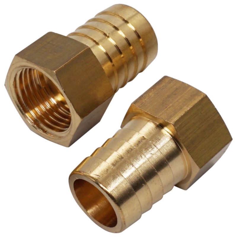 SKIR'CO 2 pcs Female Thread Barb Brass Fitting 1/2" x 20 mm, Hose Barbed Adapter, Hose Tail Connector, BSP Thread