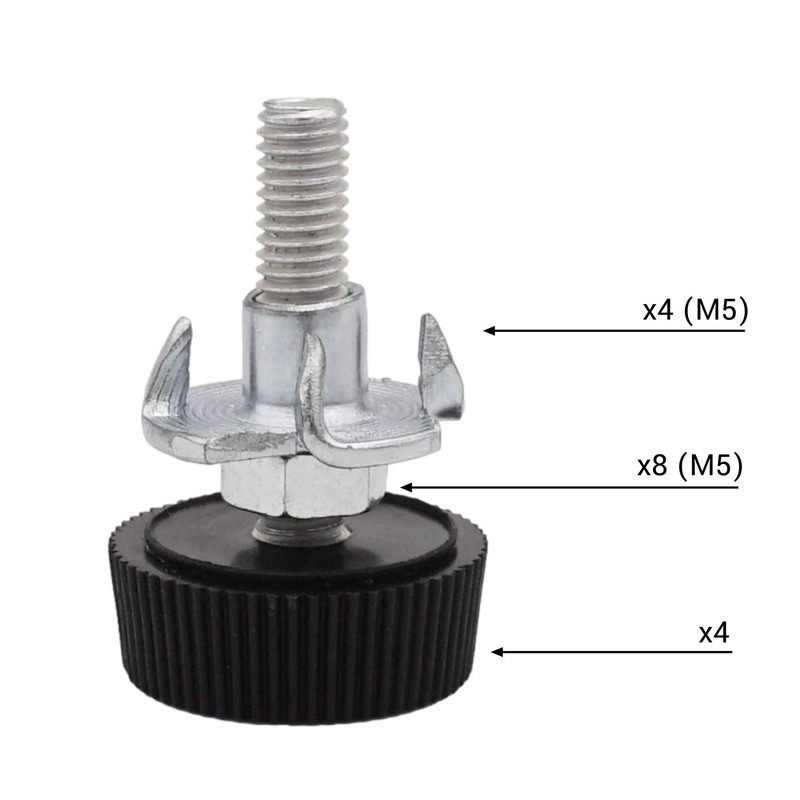 - Packed: 4 furniture leveling feet, 8 regular nuts, 4 T-nuts. Size: M5 x 20 mm.