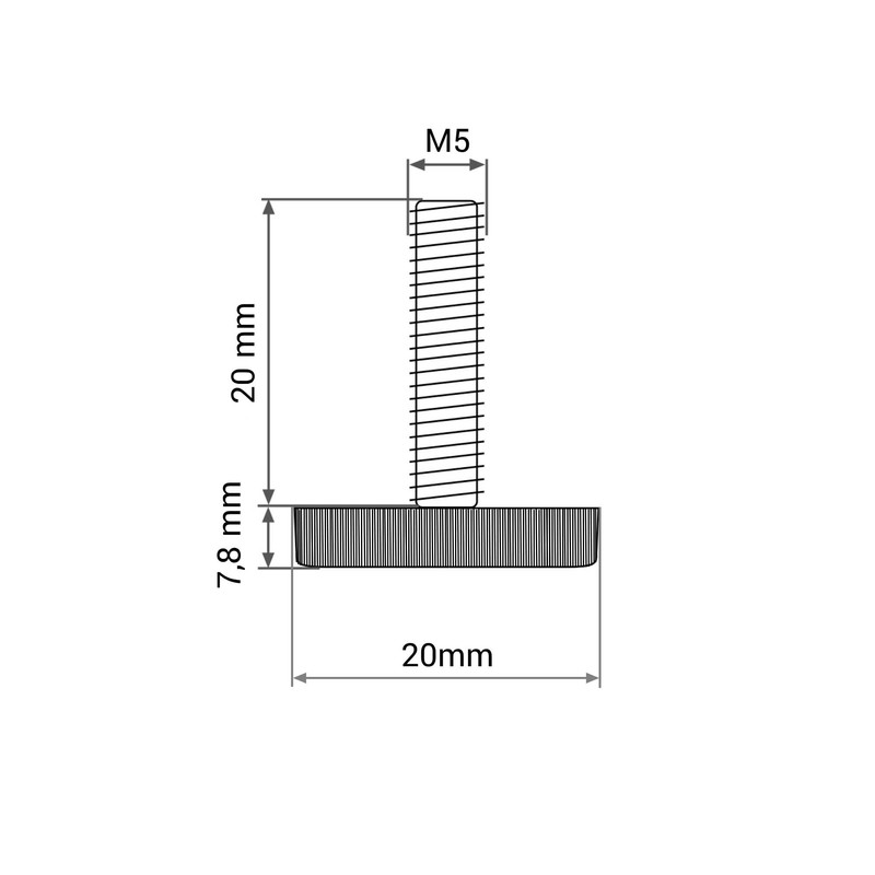 - Black part diameter: 20 mm. Solid construction. M5 threaded stem.