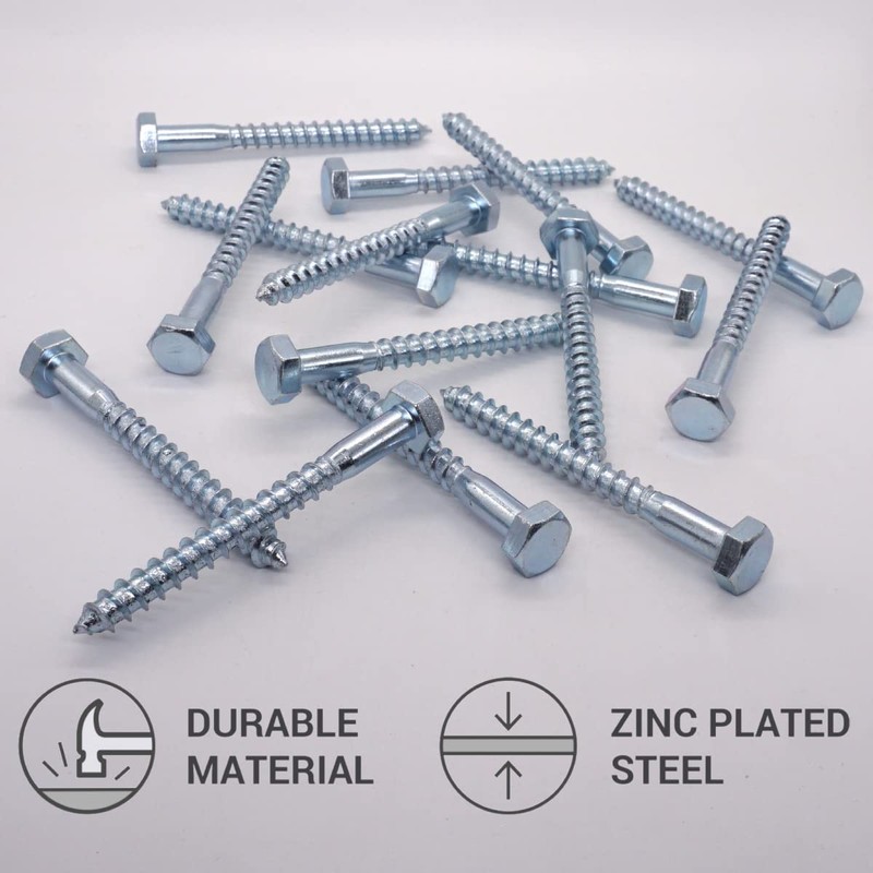 - ✔️ Zinc plated steel hexagonal head wood screws are strong, durable, reliable and long lasting. Zinc layer protects screws from corrosion;