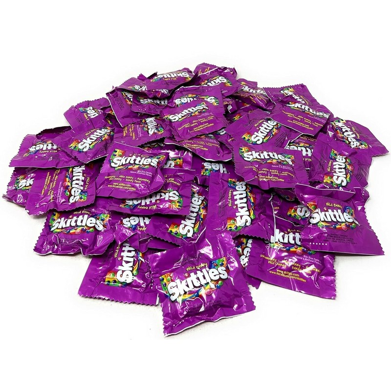 Contains One (1) 4 Pound Bag of Skittles WildBerry, Fun Size Packets, Individually Wrapped, Bulk &Delicious Candy.