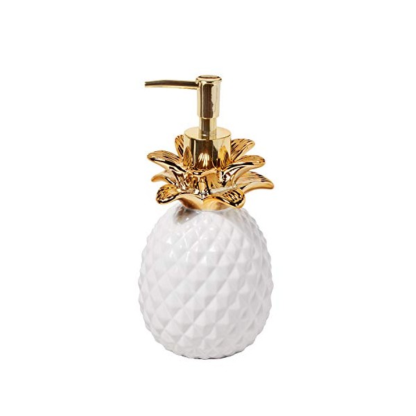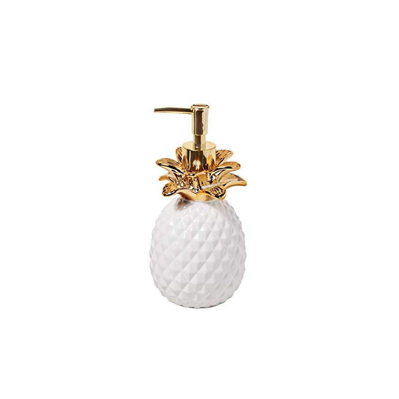 SKL Home Gilded Pineapple Ceramic Soap/Lotion Dispenser, 14 Oz. Capacity, Tropical/Coastal/Resort, for Bath/Kitchen/Bar & Gift, White/Gold