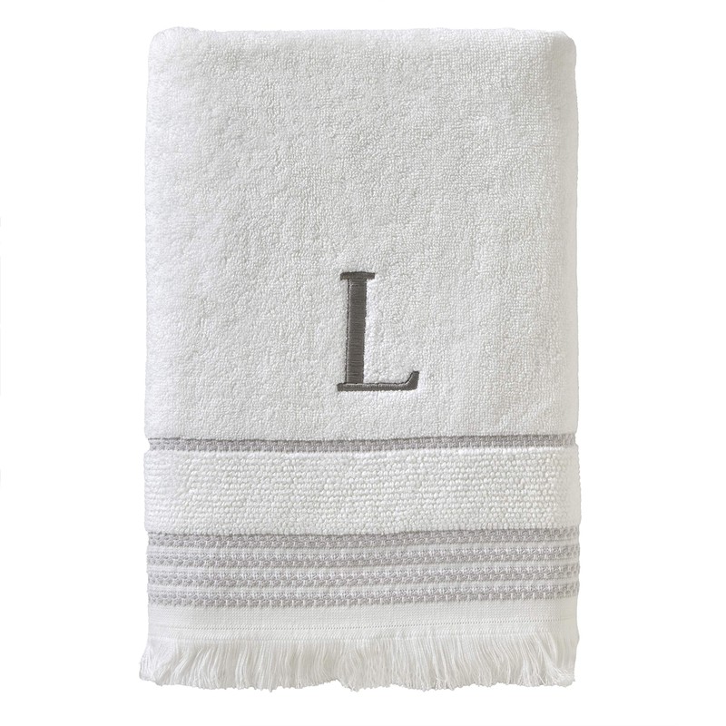 SKL Home Casual Monogram Bath Towel, L, 28x54, White