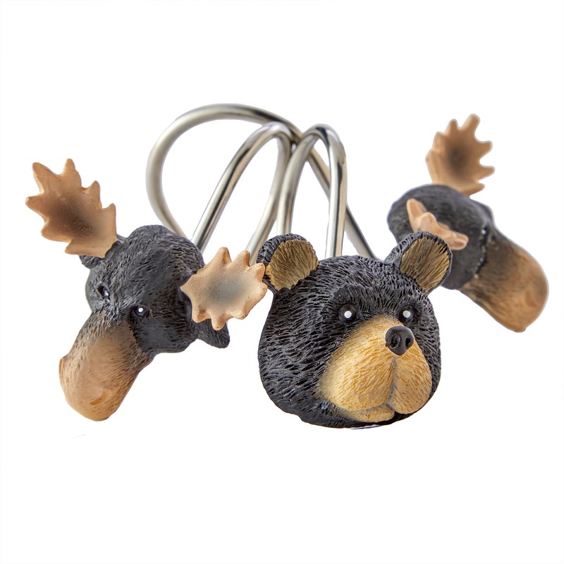 - Cute, sculpted bear and moose head hooks with a metal ring
