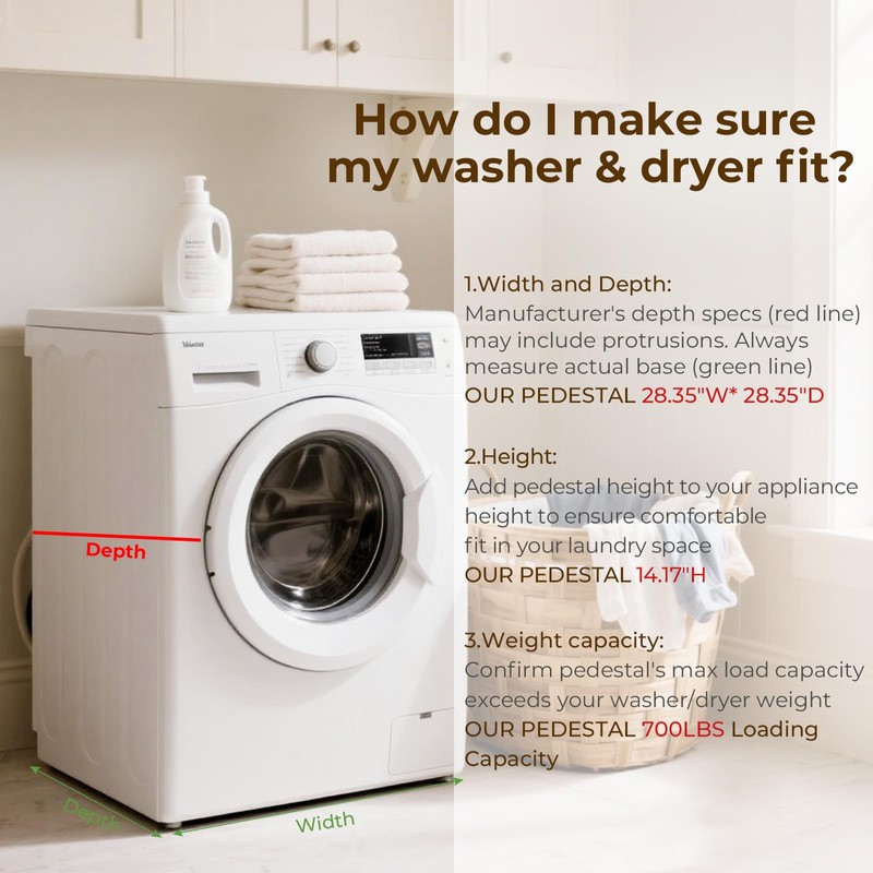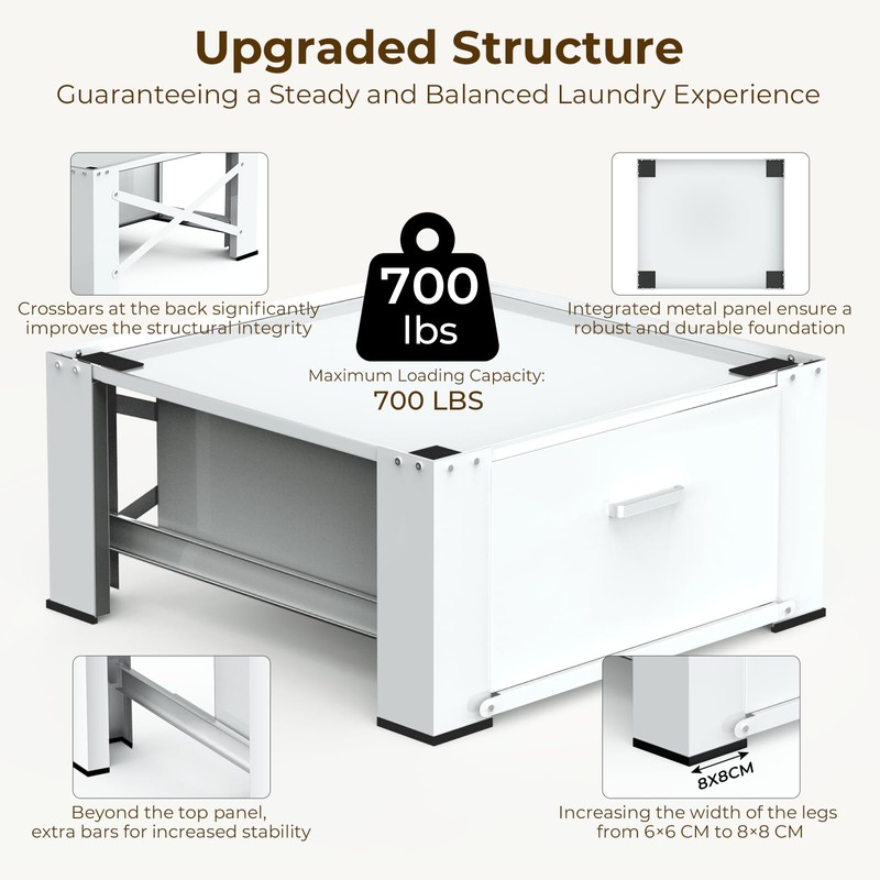 • 【Universal Fit & Stability】Designed specifically as a sturdy base for front-load washers and dryers up to 28 inches, our pedestals offer universal compatibility and superior stability. The robust frame can support up to 700 pounds, ensuring your appliances remain steady during operation.