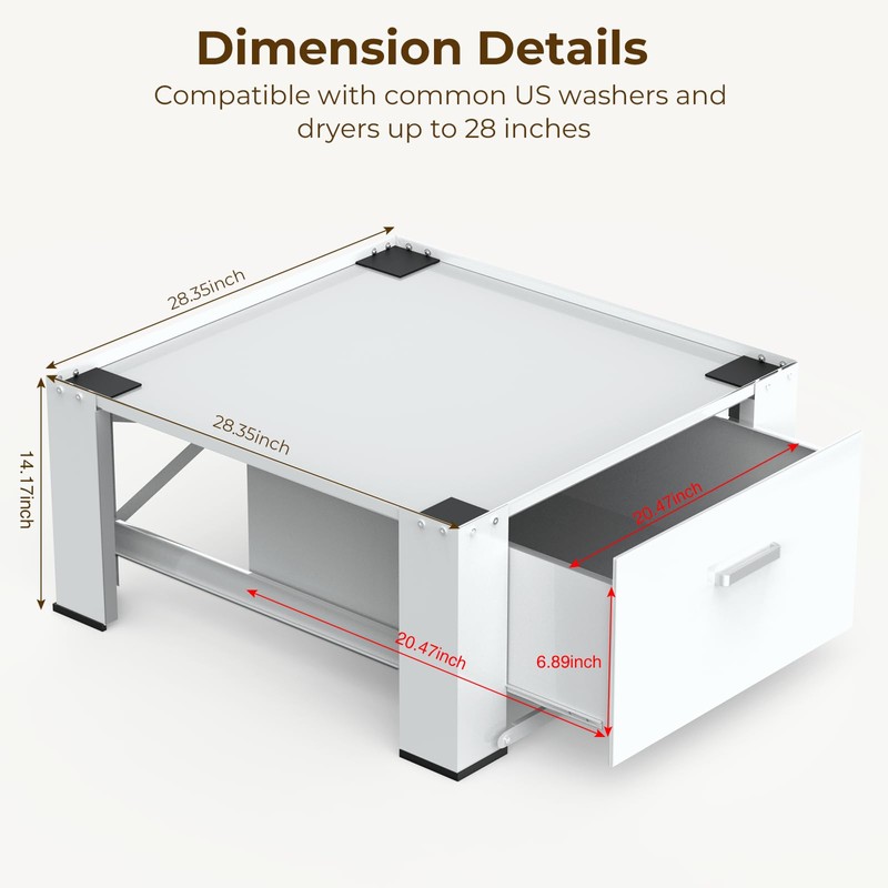 SKM Washer Dryer Pedestal Base - 28" Appliance Elevator Stand with Storage Dr...