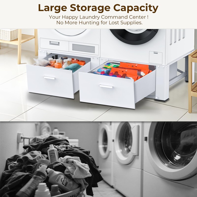 • 【Convenient Storage Solution】The pedestals feature generous drawer storage, allowing you to store laundry essentials neatly and access them effortlessly. This helps maintain an organized and efficient laundry area.