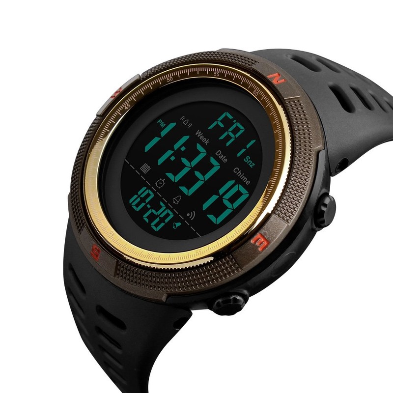 SKMEI 1251 Men's Digital Watch Large Face Sport Wristwatch (Brown/Gold)