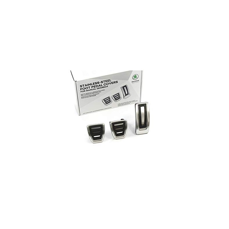 Skoda 5E1064200 Pedal Caps 3-Piece Sport Brushed Stainless Steel Tuning Sports Pedal, Only for Manual Transmission