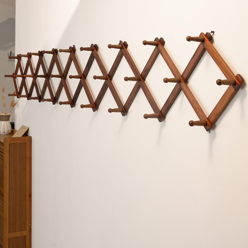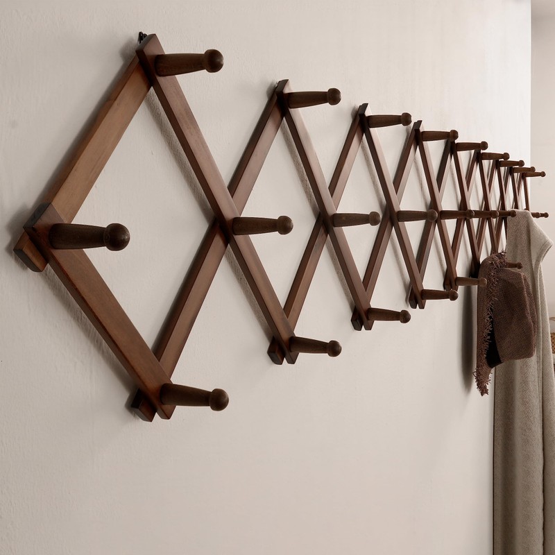- 【High-quality & Sturdy】Solid wooden accordian wall hanger with lots of pegs,28 pegs hooks,smooth surface finish.