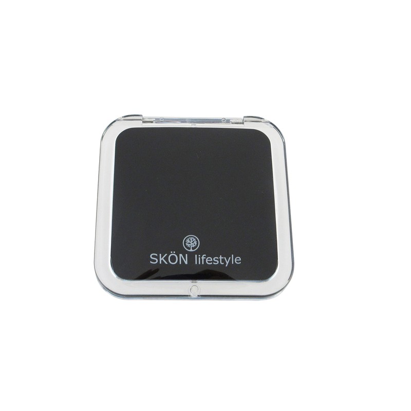 **SKÖN lifestyle introduces Missy - 15X/1X Magnification in Black. Who is Missy?** Missy is fun, chic and causal. Missy is always willing to hangout and wants to be seen with you. Missy should be your new best friend. **Stature:** Missy is small and lightweight. Missy has a hard exterior but is very fragile on the inside. Missy is best described as a square; Missy’s measurements are 3.25x3.25 inches. **Style:** Missy is very versatile; she can be casual, trendy chic or cosmopolitan glamour. Missy can be seen in classic white or black, but can also be seen sporting the current trendy colors. **Most prized possessions:** Missy has two square 2.75x2.75 inch optical, distortion-free glass mirrors; one mirror is a traditional 1X magnification, while the other is a 15X magnification. **Personality traits:** Missy is a true friend because she will never lie to you. When you need her, Missy will always offer you her two points of views. Missy will tell you exactly how things are, meaning there is no sugar coating. But if you move closer, Missy will whisper little secrets about yourself. Missy will tell you things about yourself that you may not have noticed before. Don’t worry, your secrets are safe with Missy. Are you ready to hang out with Missy?
