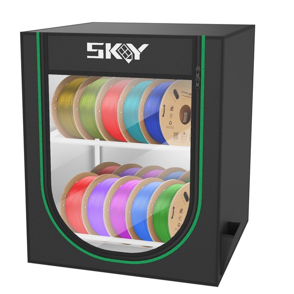 - Large Space For Multiple FilamentsWith the accelerated development of 3D printing, the demand for high-speed printing and multi-color printing has also increased. We are considering designing a small desktop area and large storage filament box for 3D printing enthusiasts to store. It has the following advantages. Small volume, large capacity. Strong weighing ability. Waterproof and dustproof. Double layered design for quick selection of consumables. Can be DIY used as a model display stand, etc