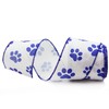 SKOVVART Navy Blue and White Paw Print Wired Edge Ribbon, Burlap Dog Cat Pet Paw Ribbon Wired for Wreath, 2.5” x 10 Yards (Blue&White), RDB-348