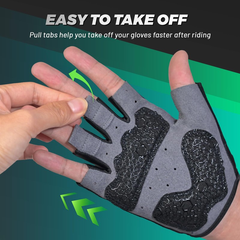 • Easy to put on and take off: the pull label design on the bottom of the two fingers makes it easy to wear and quickly take off the MTB gloves men. The Velcro design on the wrist makes it easier to adjust the gloves to wrists of different sizes for more flexibility.