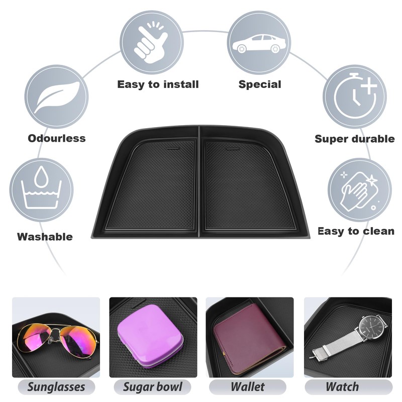 - Premium material: made of high-quality ABS plastic, strong and durable. This organizer comes with a non-slip mat that is wear-resistant and non-slip, which keeps things in place and does not affect your driving.