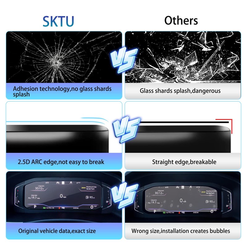 SKTU Displayschutzfolie kompatibel mit VW T-Cross/T-Roc/Tiguan 2 / Arteon 2 / B8 Passat Variant Instrumententafel Schutzfolie aus gehÀrtetem Glas Digital Cockpit Pro 10,25 Zoll