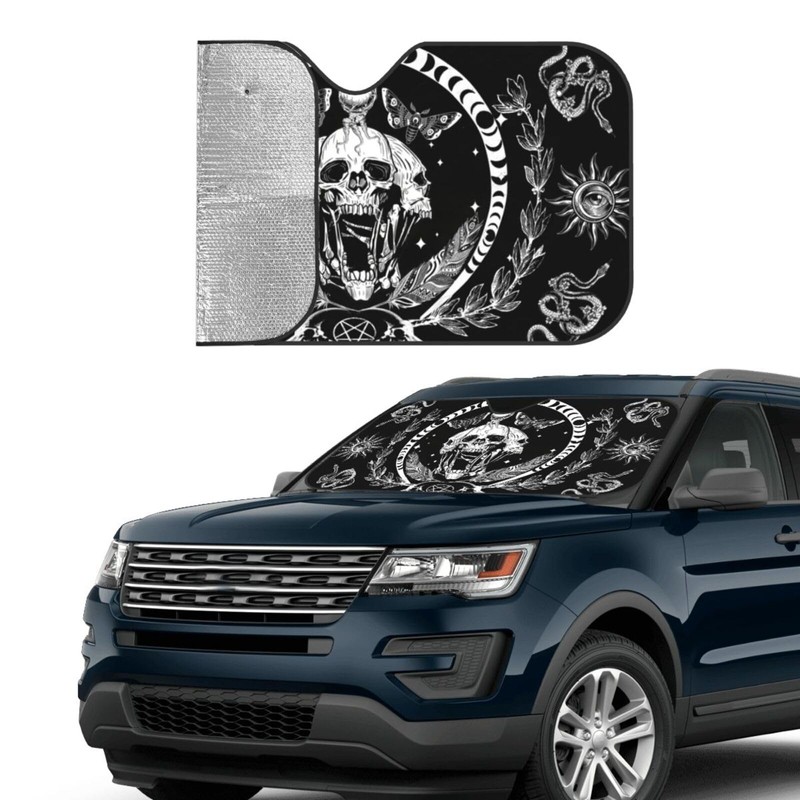 Skull Aesthetic Skeleton Trippy Goth Moth Snake Moon Stars Windshield Sun Shade, Car Front Window Shades Cute Sunshade Cover Sun Visor Shield Block Automotive Interior Protector Blocks Uv Rays