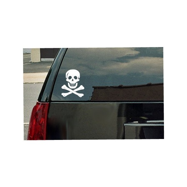 Skull and Bones Pirate Logo Vinyl Decal - White Window Sticker