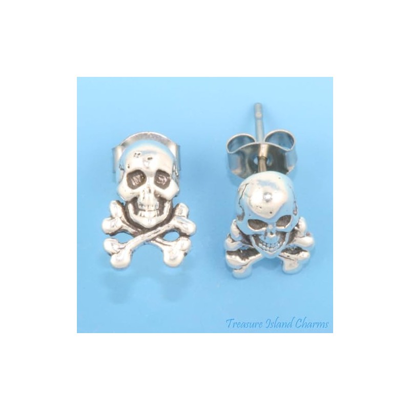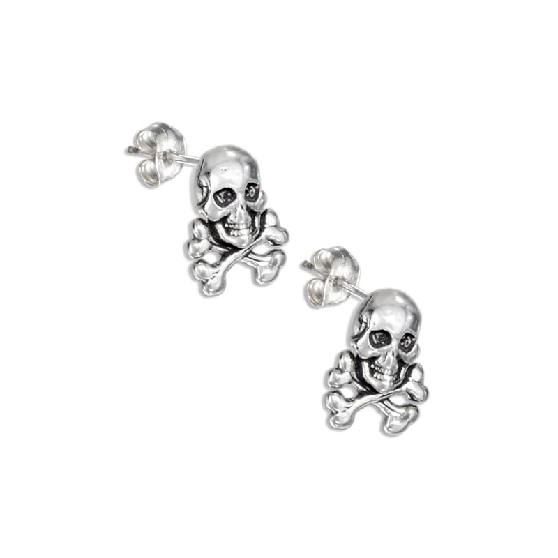 Skull and Crossed Bones 925 Sterling Silver Post Stud Earrings with Hypoallergenic Posts