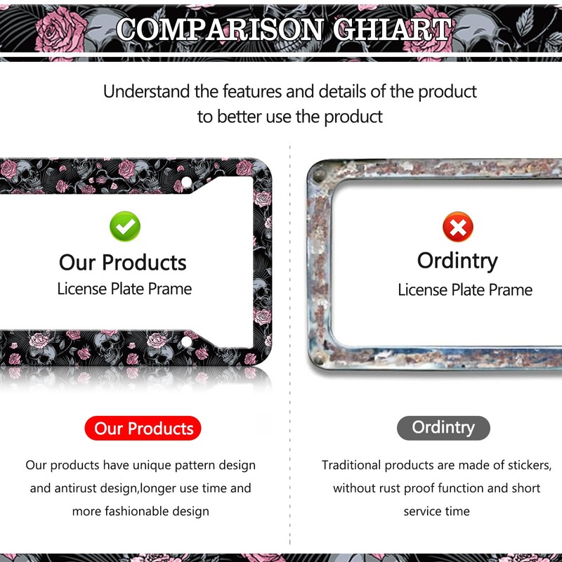 • 🚗【Print Design Ideas】Funny pattern, beautiful and uniquewhether you park your car in the yard or travel outdoors, your license plate will stand out.These frames use uv and water-resistant ink, so no need to worry about fading or smearing.Advanced digital printing process to prevent corrosion and rust. Whether it's a car wash, heavy rain or hot weather, it still looks brand new.