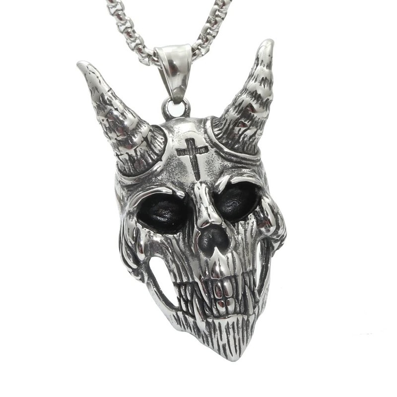 1 x Men’s Demon Satan Skull Pendant Necklace Gothic Cross Skull Goat Head Necklace Viking Hip Hop Jewelry for Men mens