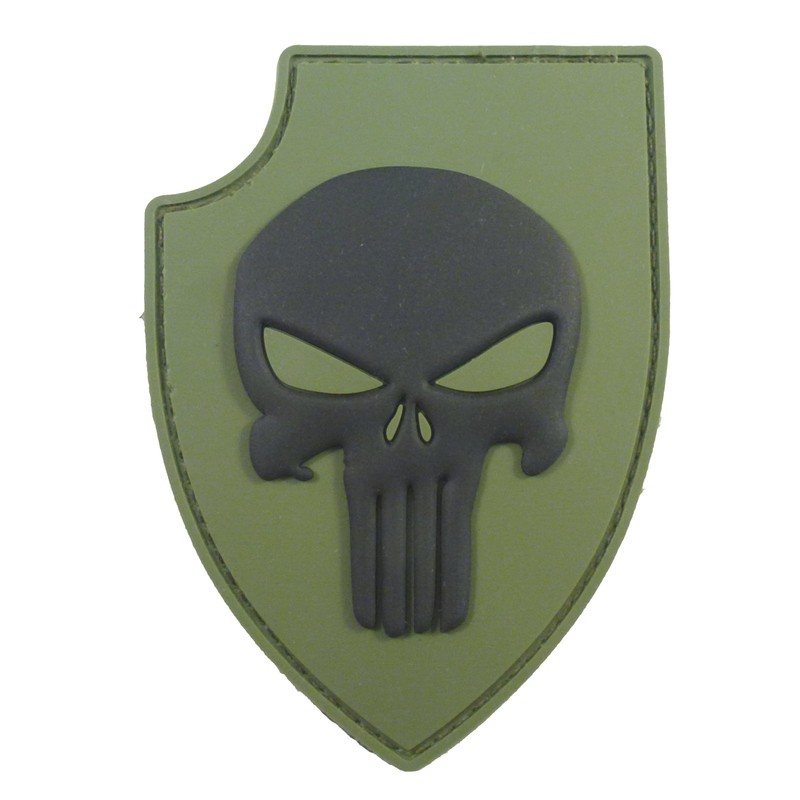Skull Shield Morale Tactical PVC Patch (Blackout Subdued) (Olive Drab)