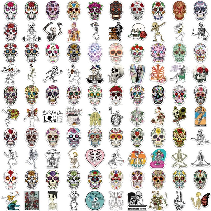 Skull Stickers 100 Pieces for Water Bottles, Stickers for Laptop, Skateboard, Waterproof Vinyl Sticker Pack, Gift for Children, Teenagers, Girls