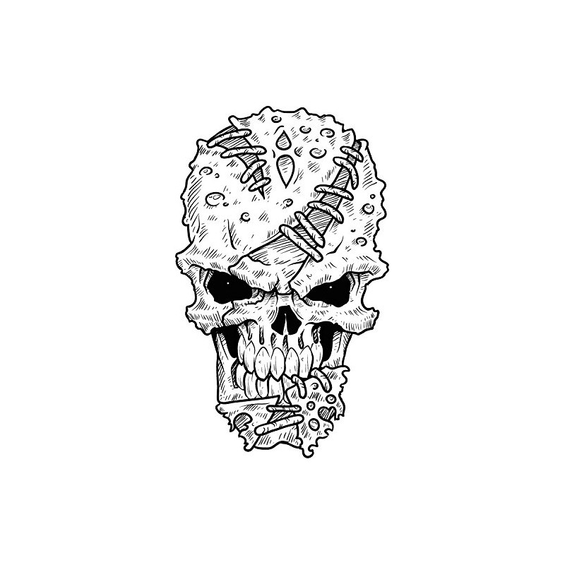 Skull Sutured Car Bumper Sticker Decal 3" x 5"