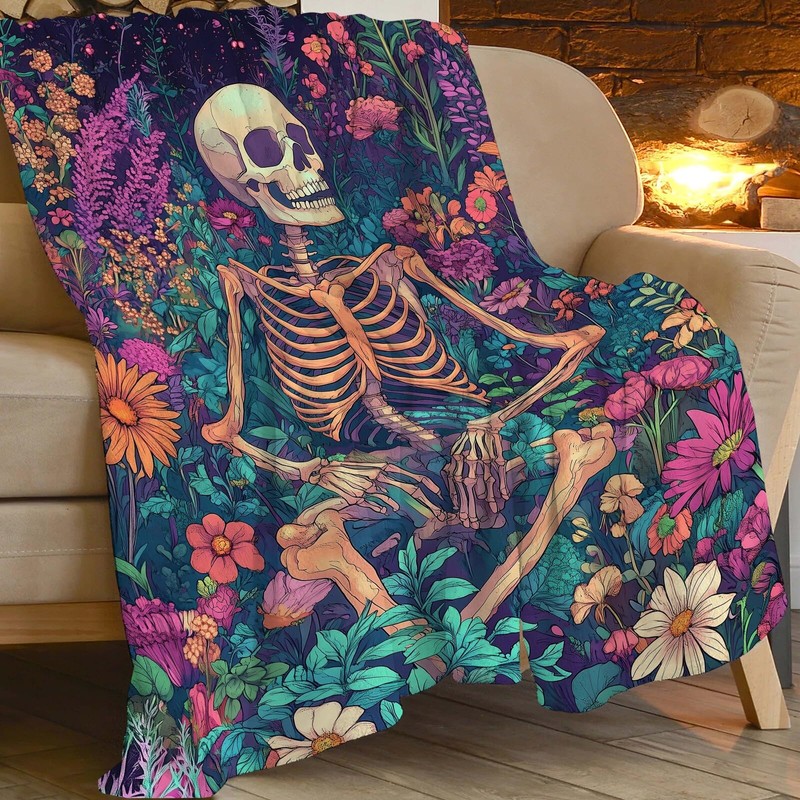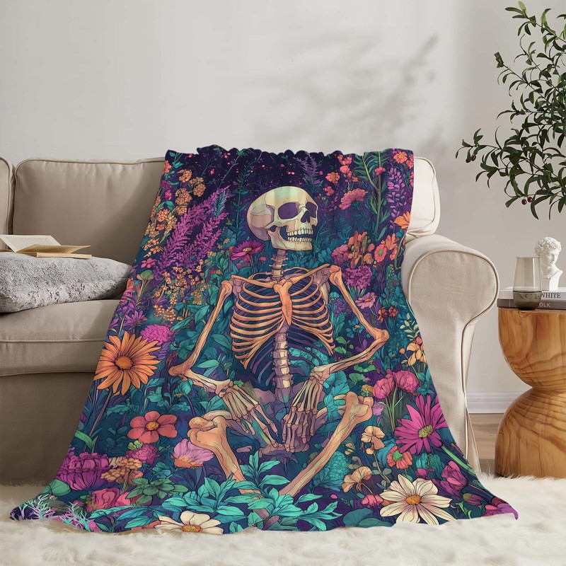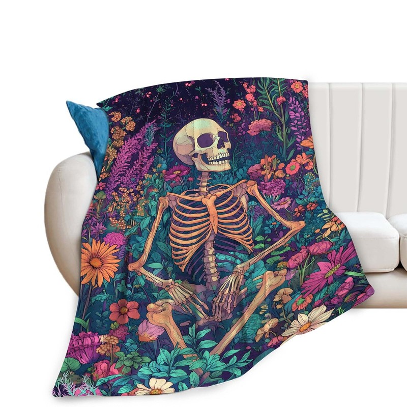 Skull Throw Blanket Skeleton Flower Gifts for Kids Girls Boys Adults Women Men Soft Cozy Warm Plush Fluffy Fuzzy Fleece Blanket Birthday Festival Halloween Home Decor 40''X50''