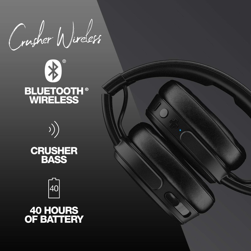 Crusher offers an audio experience unlike any other on the market C one that puts you front row for your favorite music and movies. Utilizing two full-range 40mm audio drivers and additional dual bass drivers, crusher transforms your audio into an immersive experience you don't just hear, you feel. Pair that with wireless technology and up to 40 hours of battery life, and you have a Premium Bluetooth headphone with powerful bass you can feel.