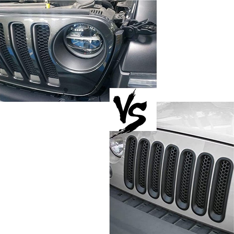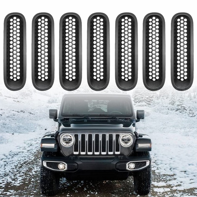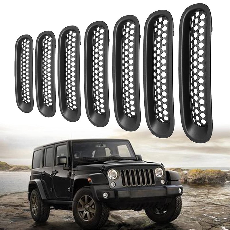 - 7 pcs of black front grilles are included. Definitely a cool and inexpensive modification to any Jeep,it'll enhances the look of any Jeep! Warning:This product won't fit the Hood Lock!Top is much narrow than bottom,please do not install them up to down.