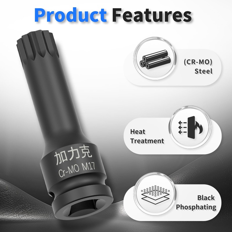 - 【Material】The Impact Drive Socket, crafted from premium cold heading heat-treated chrome molybdenum steel, offers unparalleled durability. Its distinctive black phosphate finish not only looks sleek but also provides superior rust resistance, ensuring a long-lasting performance.