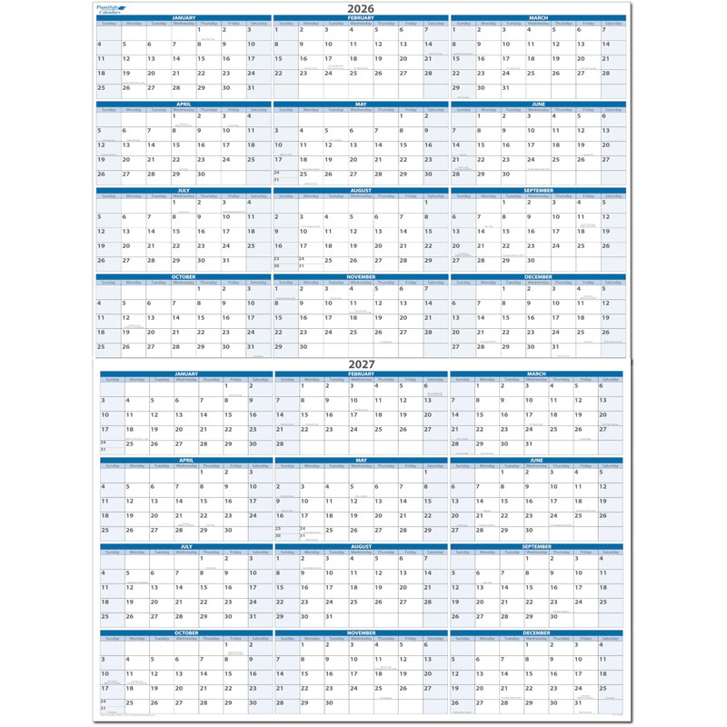 Sky Blue 2-Year Dry-Erasable Wall Calendar 2026 & 2027 - Vertical 48h x 32w. Never ghosts or stains. Complete with Dry-Erase marker and eraser