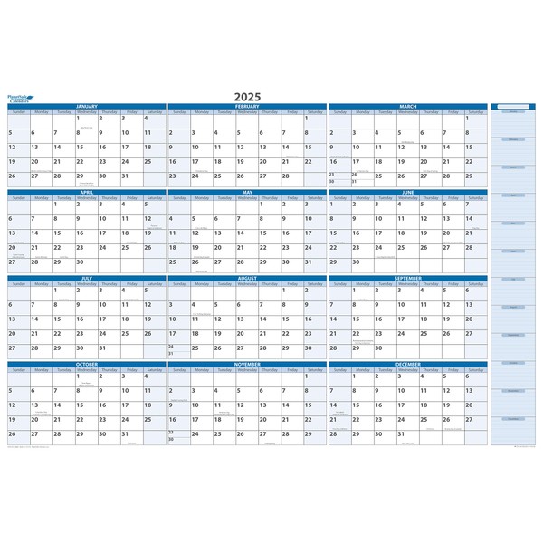 Sky Blue Dry-Erasable Wall Calendars with Marker and Eraser 36 in. X 56 in. Non-Ghosting/Non-staining - 25H58BM - with next year planning area