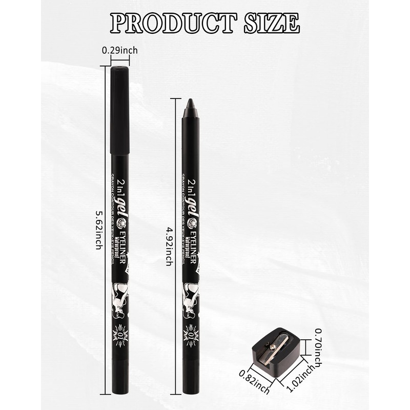 Gel Eyeliner Pencil, Sharpenable Eye Liner Waterproof Smudge proof Long Lasting, Matte Gel Cream Smooth Texture, Shimmer Cream Intense Color Waterline Eyeliner Pen Makeup with Sharpener, High Pigment Cruelty Free Delineador De Ojos