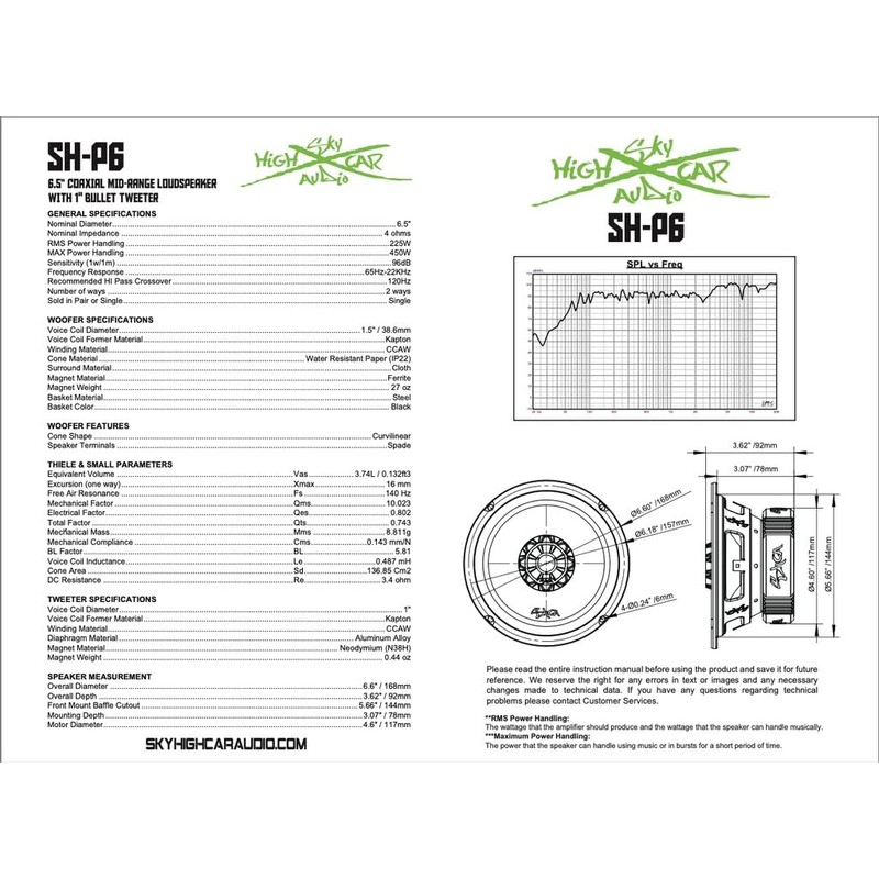 Sky High Car Audio SH-P6 6.5” COAXIAL MID-Range Loudspeaker with 1" Bullet Tweeter (Single Speaker)