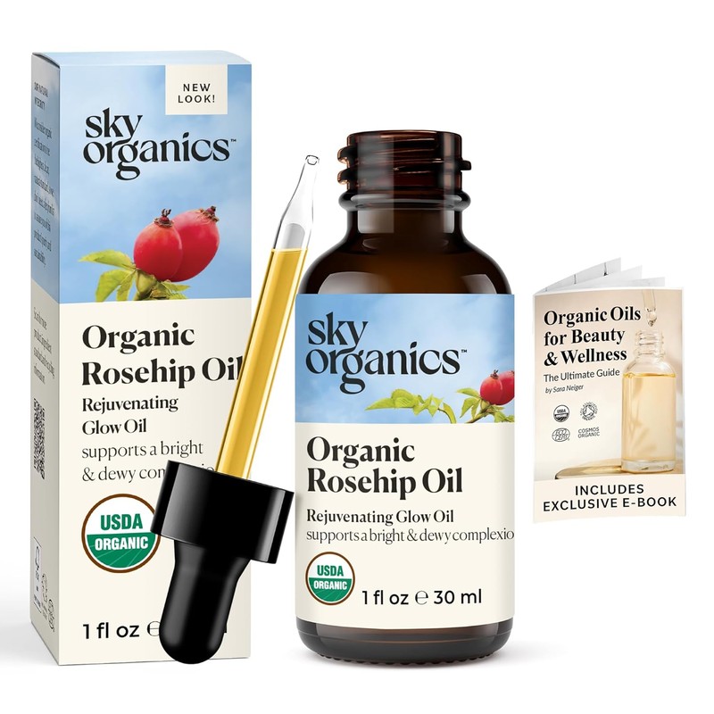 Sky Organics Organic Rosehip Oil – 100% Pure, Cold-Pressed Rosehip Seed Oil for Radiant Skin, Hair & Acne Care | Anti-Aging Face Oil with Antioxidants | 1oz