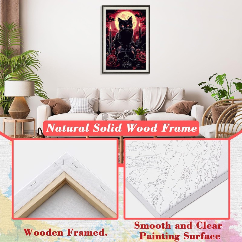 Skyboda Skull Paint by Numbers Kit for Adults Beginners with Frame, Black Cat Adult Paint by Number Kits on Canvas, Easy DIY Oil Painting Kits for Home Decor, 8x12in