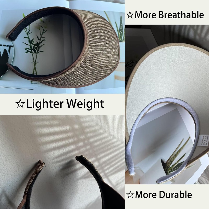 Skycelennt Sun Visors for Women ,Adjustable Cap Sports Sun Visors for Men,Clip-On Wide Brim Visor Hats Brown