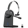- Effortless Charging & Storage: The wireless headset for work includes a USB-C charging cable and an intuitive charging base. Simply place it on the base to recharge and keep your workspace organized. The base also features a clever storage slot for the USB dongle, so youll never have to search for it again. A stylish and practical solution for minimizing clutter in your home office or creative space