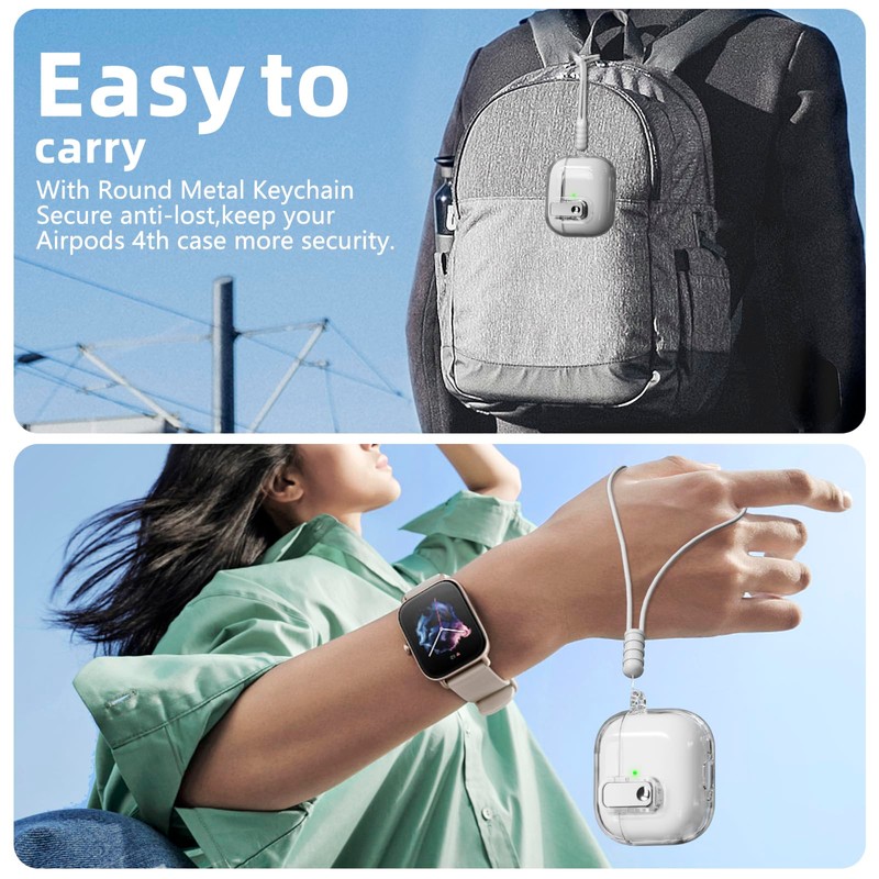 - Accessories Include:1* with safety lock clear AirPods 4th generation case for AirPod 4 ,1* Metal anti-lost Lanyard,1*Cleaning Pen(Please Note: Airpods 4th headphone and charging case are not included)
