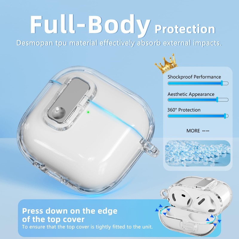 - Unique Security Lock design :Upgraded Metals security lock design makes it easier to open and close. Keeps the AirPods 4 Gen (2024) (USB-C) charging case well closed and ensures that the cover never falls off. Ensures that your airpod case 4th generation is held securely in place. 360°All round protection your Apple Airpods 4th Generation Case Cover effectively shock resistance to fall off.