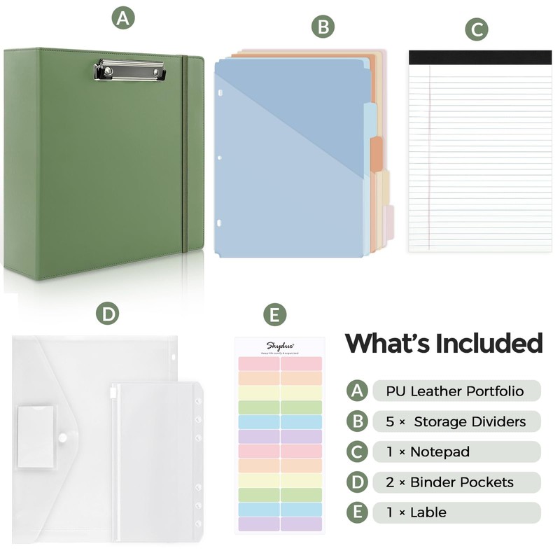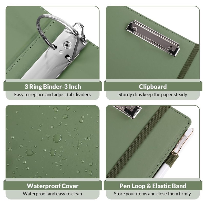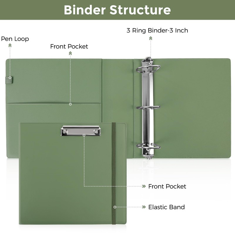 - Premium Material: SKYDUE clipboard with storage made of premium PU leather material, waterproof, heavy-duty, and easy to clean up. This sturdy 3-inch 3-ring binder could hold more documents. The metal clip provides a firmer grip, and the elastic band closes easily