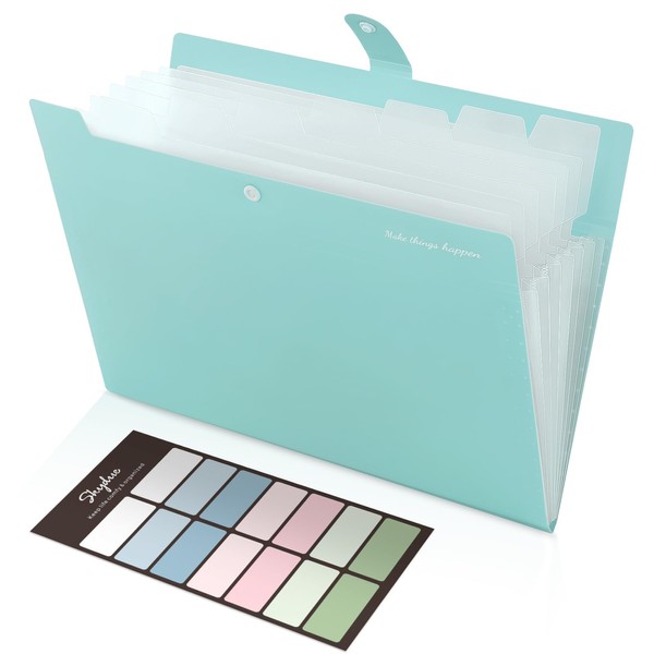 SKYDUE Document Folder A4, Expanding Folder with 8 Compartments, Portable Organiser Folder with Labels, Document Folder for Home, Office, School and Travel (Turquoise)