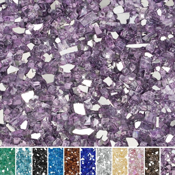 Skyflame 1/4 inch Reflective Fire Pit Glass, High Luster Purple Fire Glass for Gas Fireplace Fire Pit Landscaping